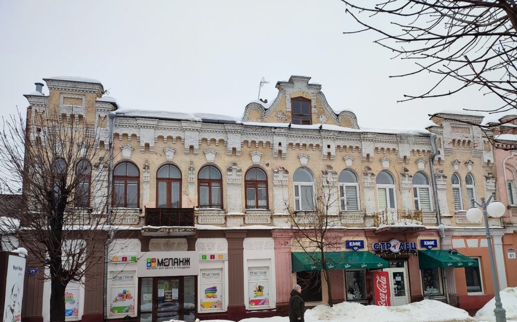 Этот двухэтажный дом в начале ХХ века построил бобруйский купец 1-й гильдии Бенцион Гешель Мордухов Кастелянский. Еще с конца девятнадцатого столетия он торговал мануфактурными товарами, торговля постепенно набирала обороты и вскоре после пожара 1902 года купец Кастелянский покупает землю на центральной улице Бобруйска и строит большой каменный дом. В доме размещается магазин тканей, которым заведует его жена Хая-Рохля и работает один наемный служащий.